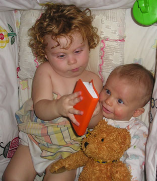 Spud's forehead message reads, "Hooray! Slept all Night"- I am certainly hoping this behavior will continue, although Zac continues to insist nothing has changed...