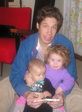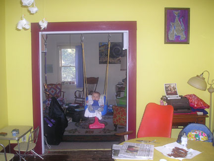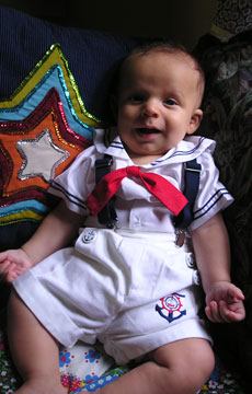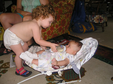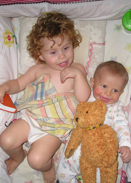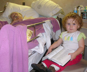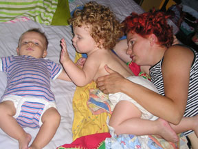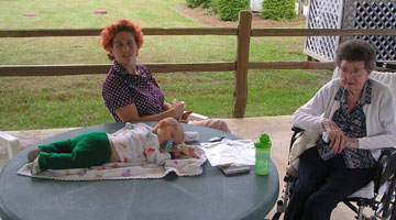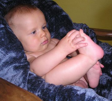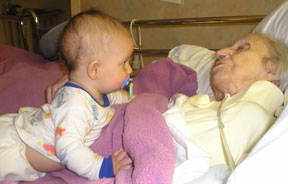 Zephyr showing off his sleeping skills for his great grandmother Todd