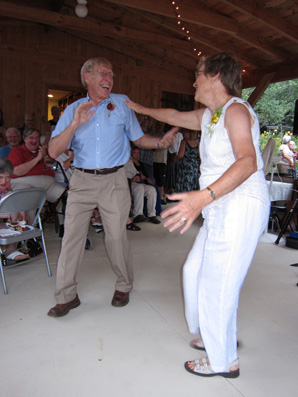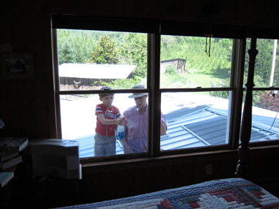 So. Then we headed to North Carolina, to celebrate Newt & June's 50th Wedding Anniversary. From this moment on, it was the theme of the summer. This is Zac and Zephyr, in preparation for the party, cleaning windows. I suspect there might have been a few extra things on the list, since there were a few extra willing workers.
