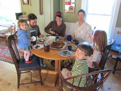 Vermont Farm House. Justin and Rose. No trip to Vermont is complete without flapjacks with maple syrup from the backyard.