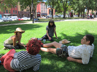 Lounging downtown Burlington Vermont, getting ready to panhandle.