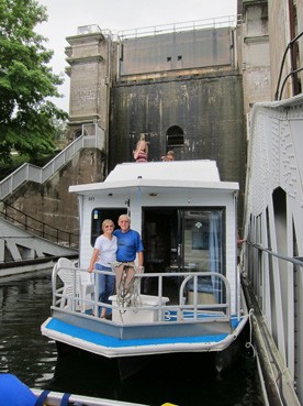 Newt & June at the Peterborough Lift Lock, the pinnacle of our nautical adventure!