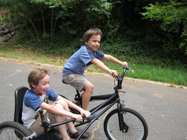 After VBS, we got all of that sittin' out of our system by checking out Kian's totally cool bike.
