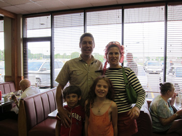 A little roadweary, and a little hungry, the waitress (who could not operate a digital camera and called over another waitress to actually take the photo) insisted that we take a picture in what she considered to be one of the last mom and pop shops in Ohio somewhere.
