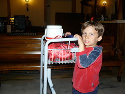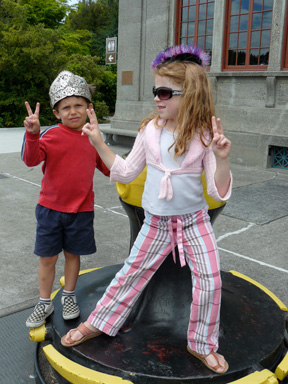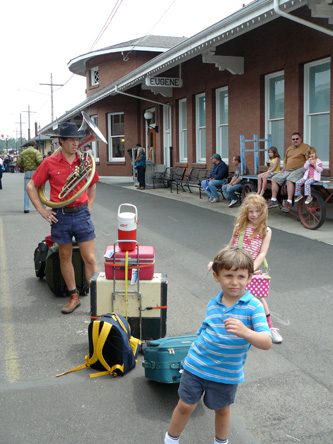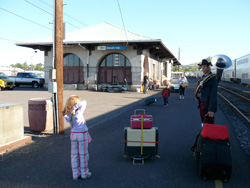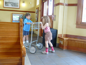 The kids enjoyed pushing carts around the Eugene station too.