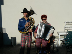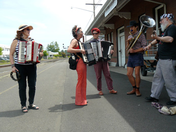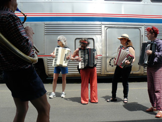 We were met by the Eugene Anarchy Accordions Anonymous group. What a homecoming!!!