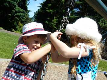 The kids played on a pretty playground in Portland with Zac, while I went out and did some yoga.