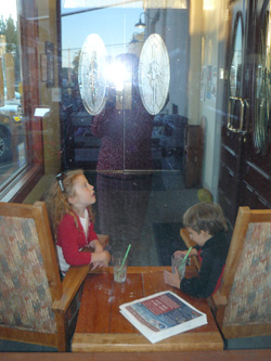 The kids occupied themselves at the Pink Door...