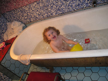 Eureka witnesses Zac's first bath (in this house)