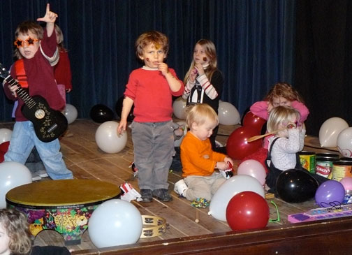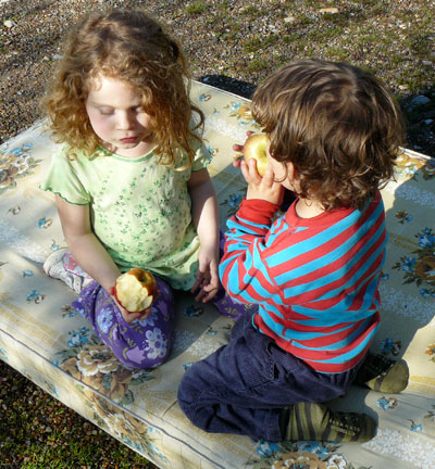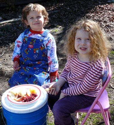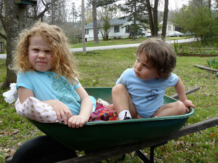 This is seconds before the wheelbarrow tipped over teaching the kids a valuable physics lesson.