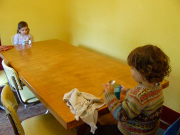 This is what happens when you put two two year olds in a room together. The faceoff.