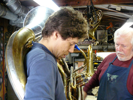 Zac's new tuba, and his new tuba friend, Dan Schultz in Indiana.